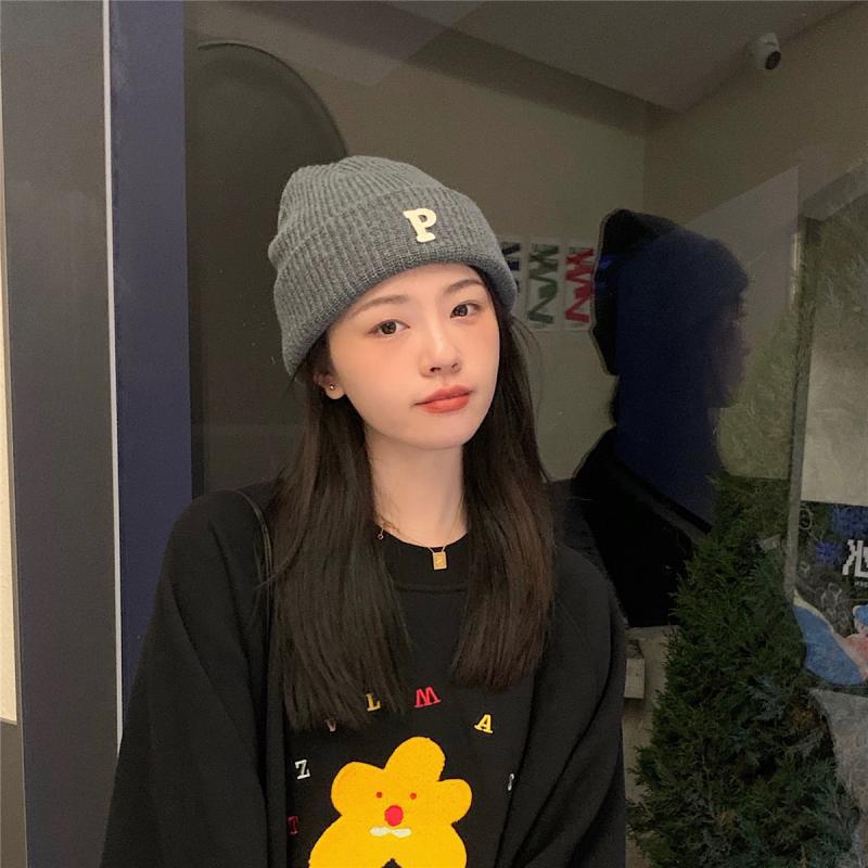 日本の顔が小さくて暖かいウールの帽子の子供の韓国版の潮の秋冬の百合は布のアルファベットのニットの帽子の冷たい帽子の男を貼ります。
