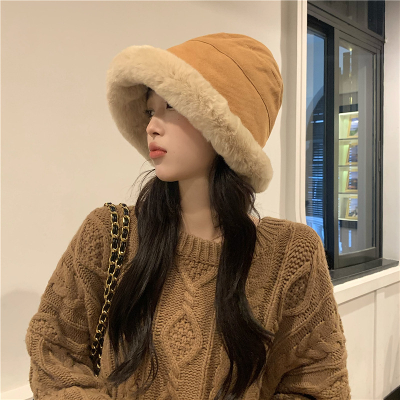 ベルベット帽子冬女2021年顔を見せた漁師帽女秋冬百合日系保温盆帽潮