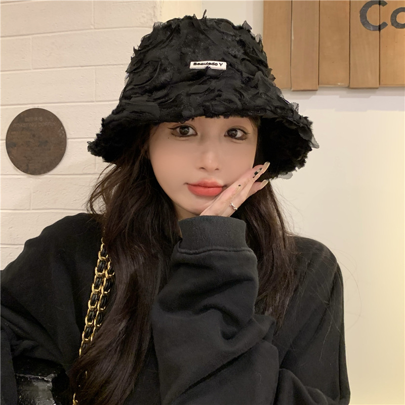 小香風保温秋冬の花の帽子のシルクの帽子のアルファベットの女性のバケツの漁師の帽子の盆の帽子のレースの帽子のファッション
