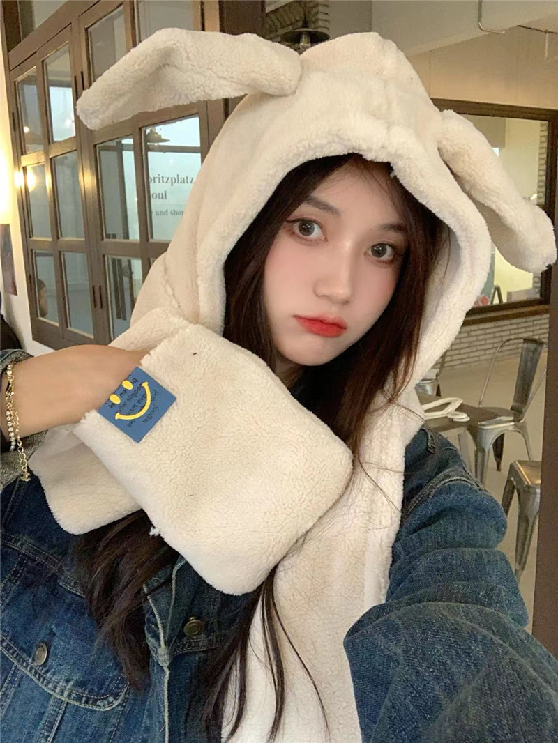 日本の甘いかわいいウサギの耳の帽子の女性の首を囲んで帽子の一体のマフラーの手袋の秋の冬の保温の学生