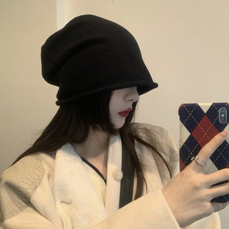 ゆったりとした大きいサイズのニット帽の女性の冬の毛糸の帽子の秋冬の保温は丸い顔に適しています。