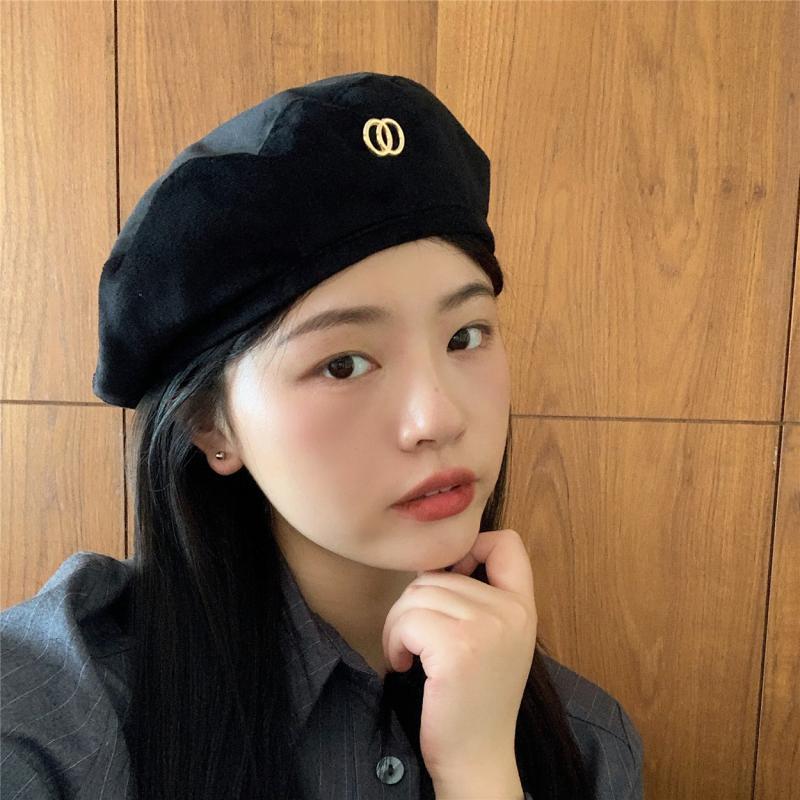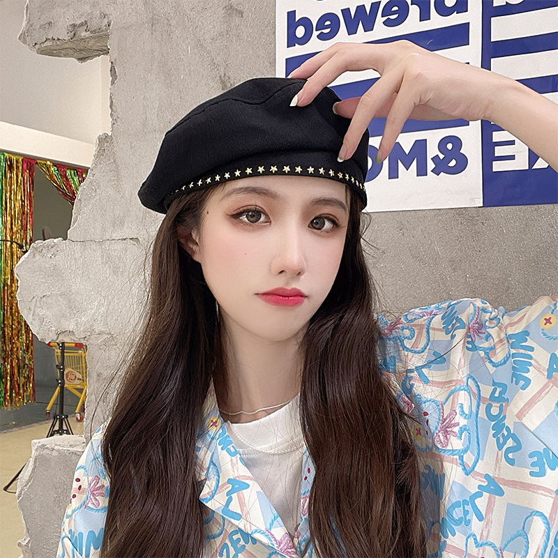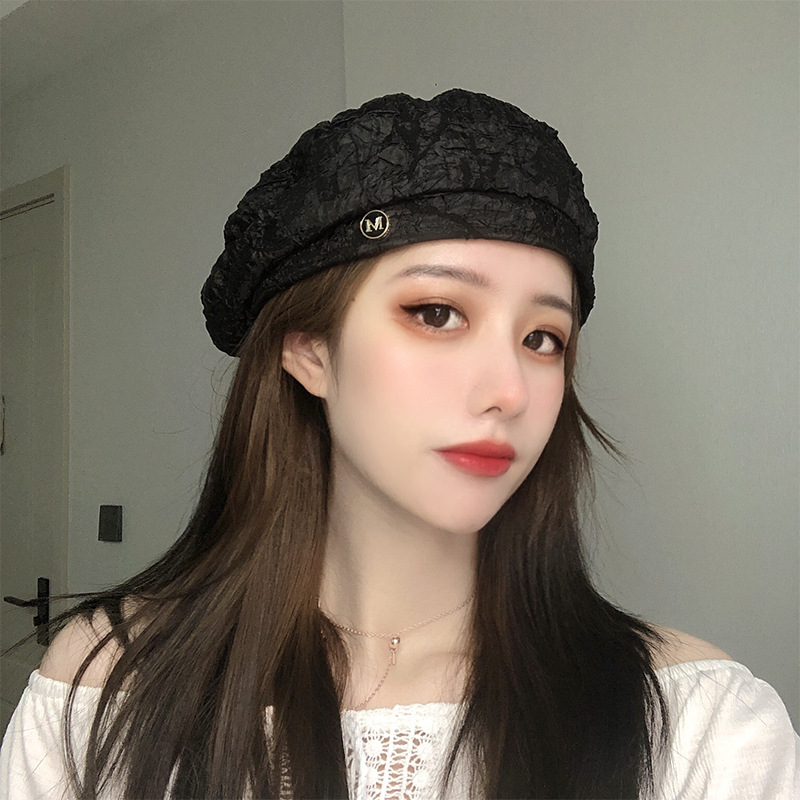 可塩可甘 ~ 金属バックル機能風おしゃれinsブラックベレー帽女性春夏英倫画家帽子秋潮