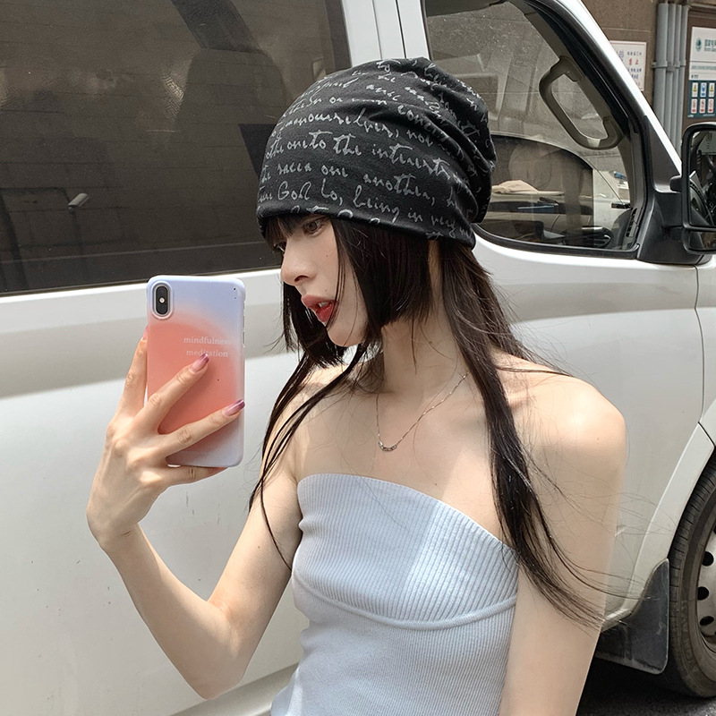 帽子の女性の日系百合の黒色の薄い種類の包頭帽子春秋insニットネットの赤い揚げ物の街の積み重ねの帽子のスカーフの帽子