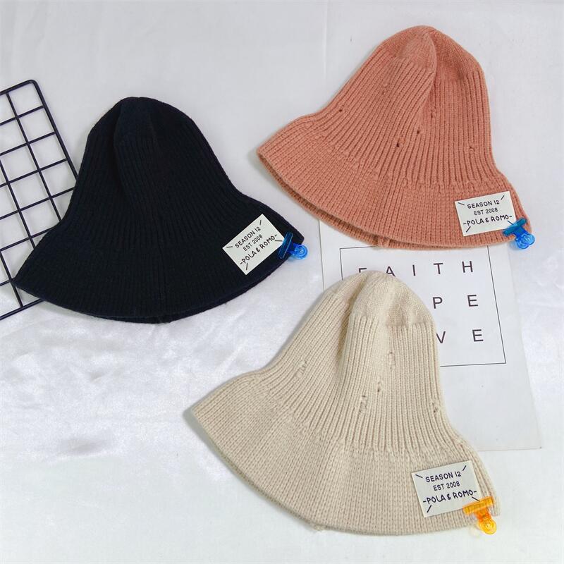 秋冬の破れ穴ニット盆帽女性韓国版純色毛糸布バケツ帽屋外保温日よけ帽子潮