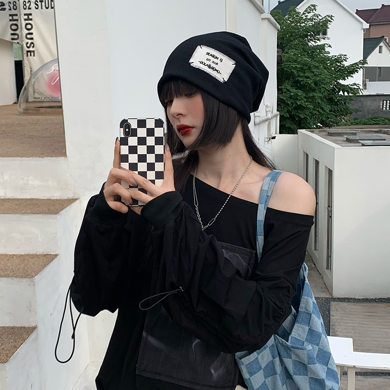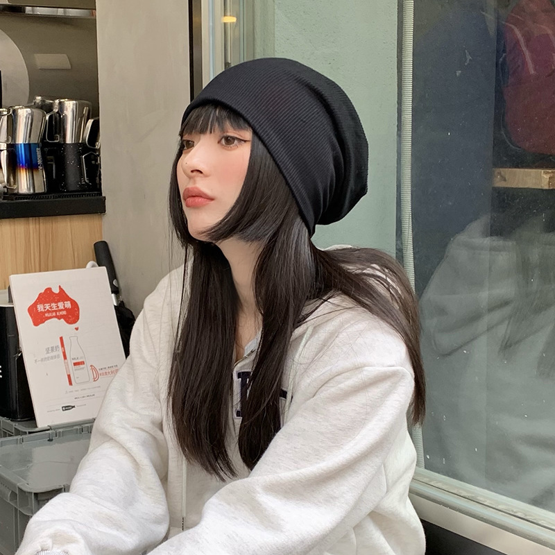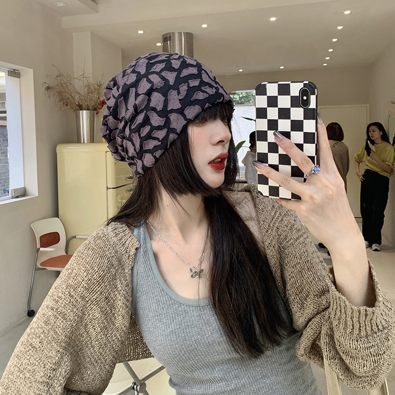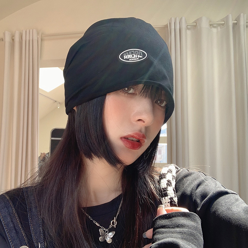 帽子の女性春秋日系百合黒色の薄い包頭帽子ins潮ニットネットの赤い山の帽子のスカーフの帽子の夏