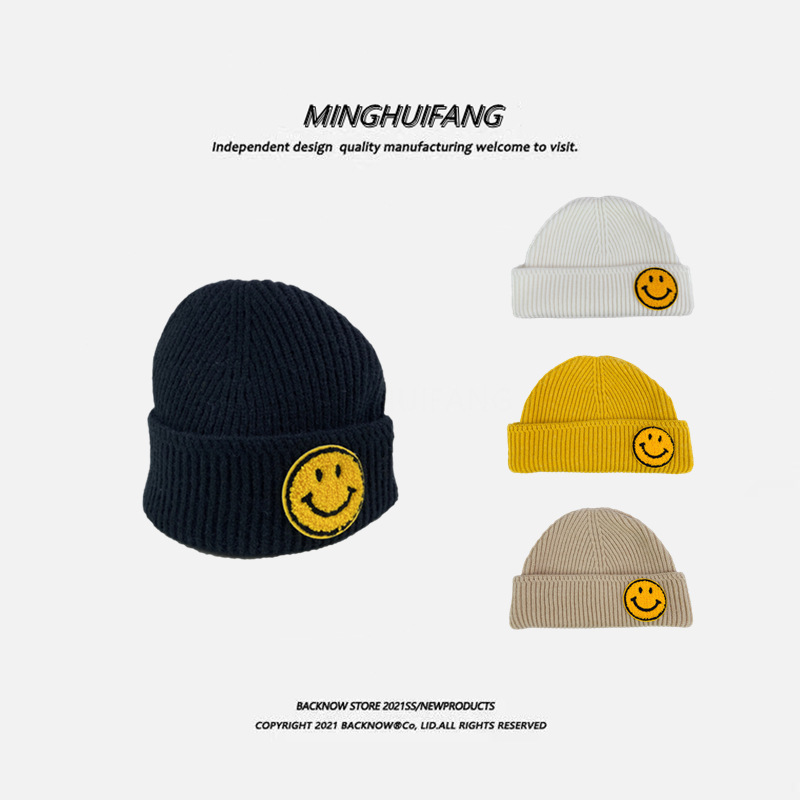 韓国版笑顔布ニット帽女性秋冬百合日系保温厚い毛糸帽子男性耳雅痞帽