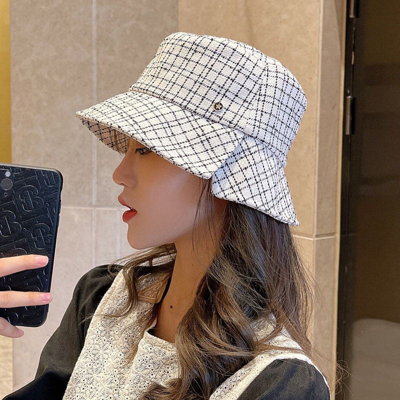 帽子ins秋冬天百合文芸格子五星標漁師帽女日系レジャー帽子盆帽女