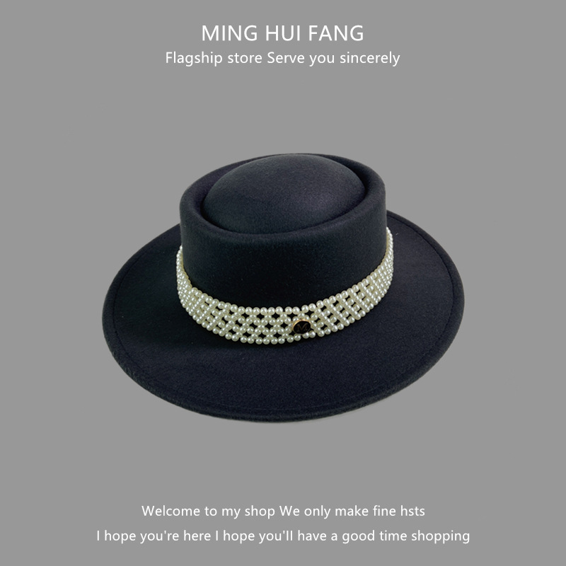 フランスのレトロな凹みの真珠の黒い毛の帽子のヘボンの礼帽の女性の秋冬の優雅な名媛の英倫のジャズの帽子