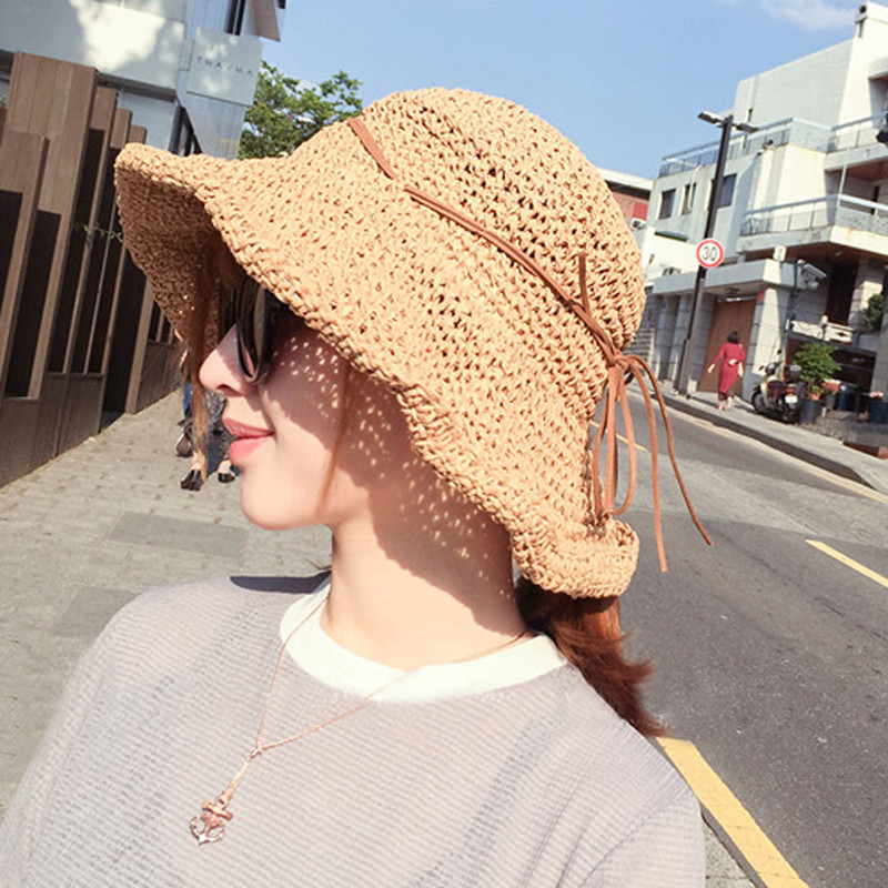 ビーチハット手作りかぎ針日本の麦わら帽子の日よけ帽子の子供は夏の日に折りたたみます。