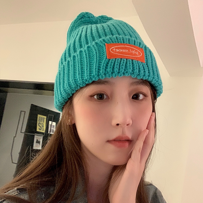 ソフト萌え妹bi入百合キャンディー色毛糸帽女性秋冬潮保温耳保護ニット帽子