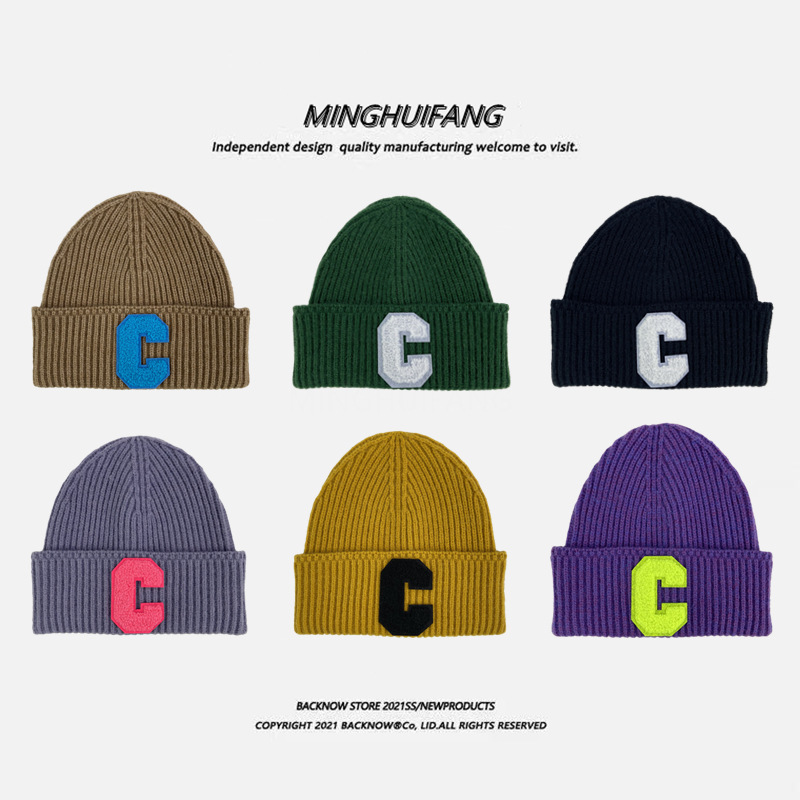 Cアルファベット帽子女性秋冬日系百合insニット帽包頭毛糸保温冷帽男韓版雅痞潮