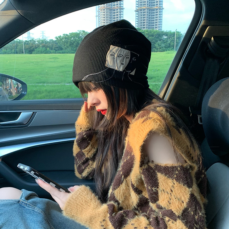 韓国insレトロ冷淡風百合山帽子ネット赤人像ニット保温帽子包頭冷帽子潮女