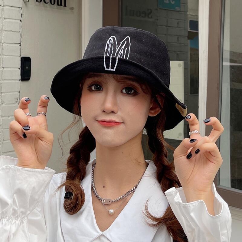 かわいい帽子の女性の春の夏の韓国版の百合漁師の帽子の日本の日よけのウサギの耳の学生は顔の潮を遮ります