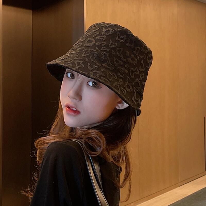 ヒョウ柄斜めカット気質漁師帽女性日焼け止め紫外線日除け帽子夏顔カバーファッションバケツ帽子盆帽