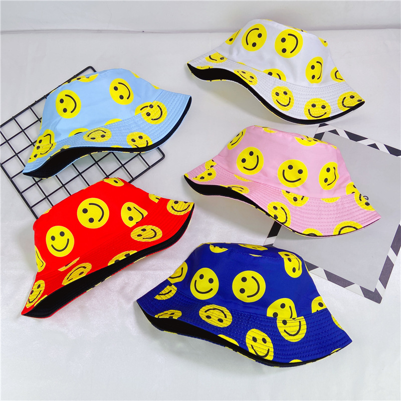 日よけ帽子の男女の日よけ帽子の子供の夏の韓国版の潮の黄色の日本のネットの赤い両面の笑顔の百合の漁師の帽子