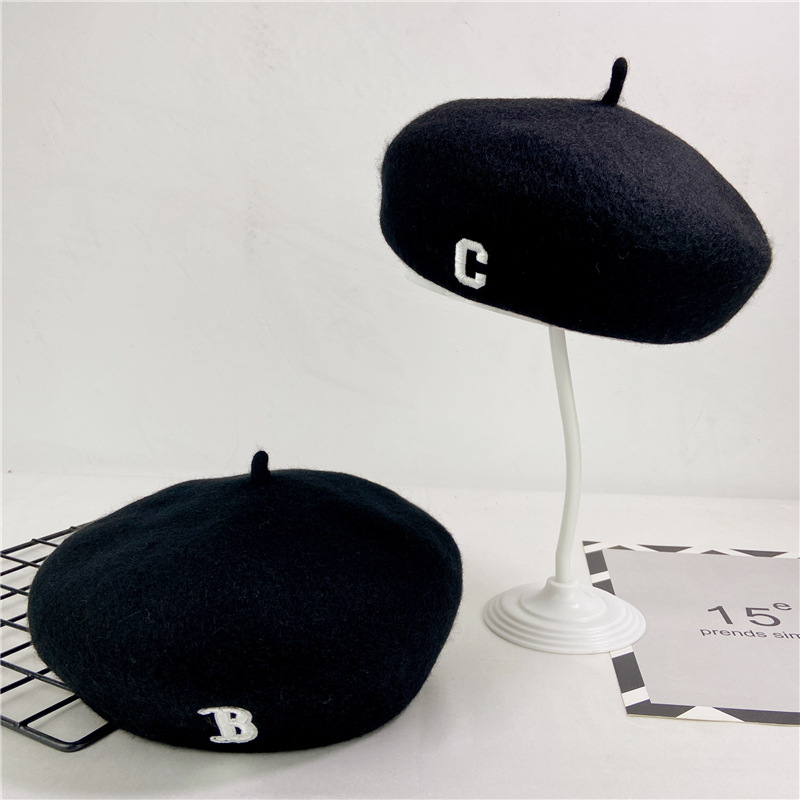 帽子の女性の秋冬のアルファベットの復古の気質の百合の子供の帽子の韓国版の日本の画家の帽子のウールのベレーの帽子