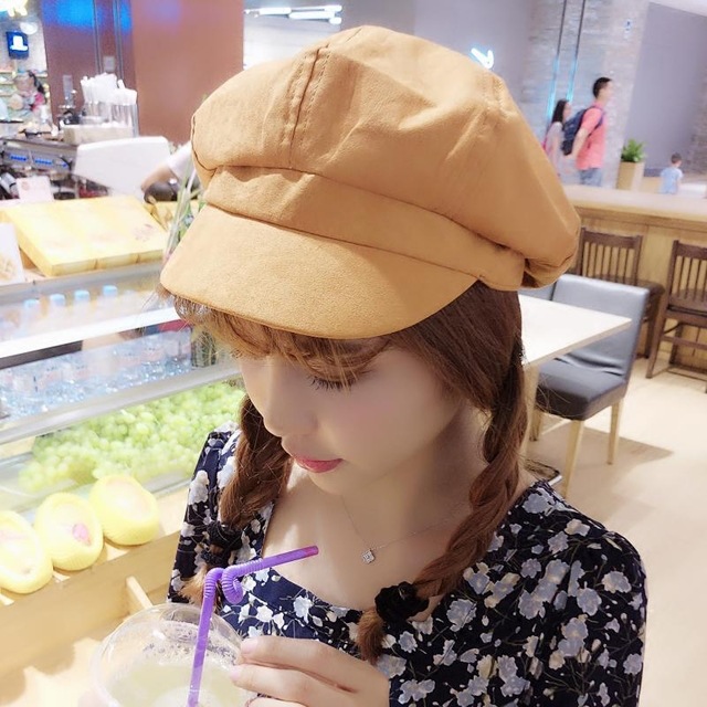 韓国鹿皮絨女春夏秋冬日韓版鴨舌ベレー帽レトロ百合画家帽女八角帽子