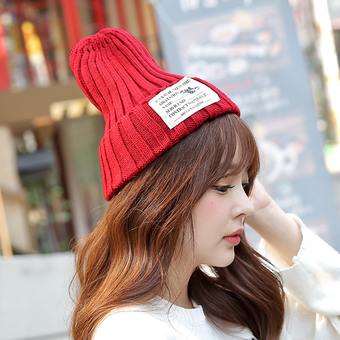 韓国は冬に布の先の尖った帽子のニット帽の毛糸の帽子を貼ります。