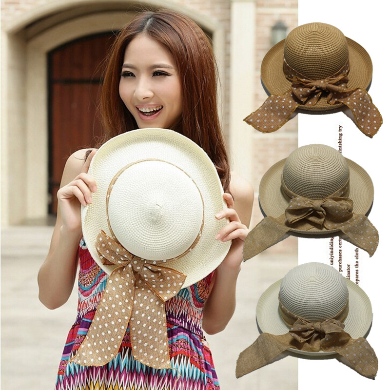 女性の夏の潮を郵送します。日焼け止めは大きな軒の太陽ビーチの日よけ帽子の屋外の麦わら帽子を折りたたみます。