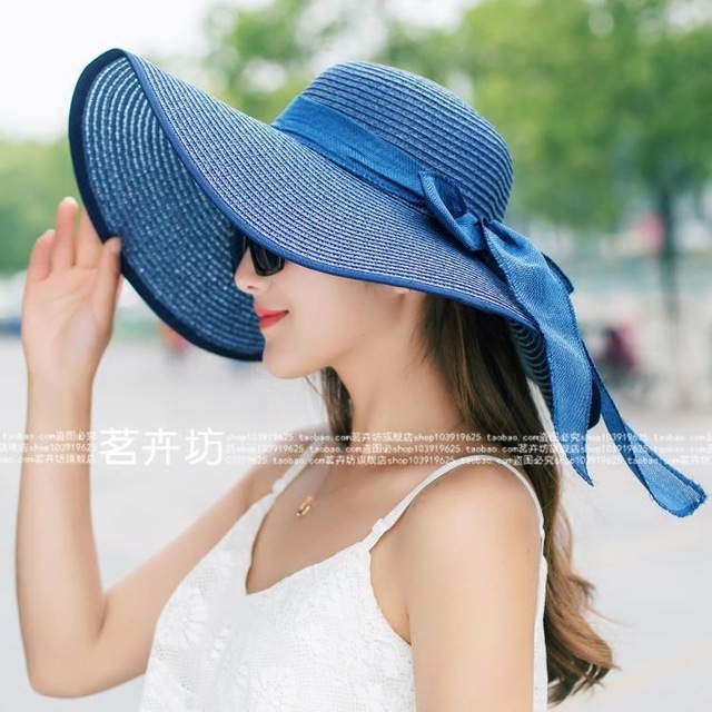 小香風夏旅行休暇帽子女性軒ビーチ日よけ草編み麦わら帽子防紫卸売り