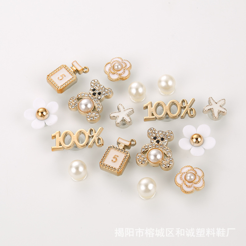 新型の洞靴DIYアクセサリーの靴の表面の部品のドリルの真珠の靴の花は熊の靴の表面の装飾の部品を取り外します。
