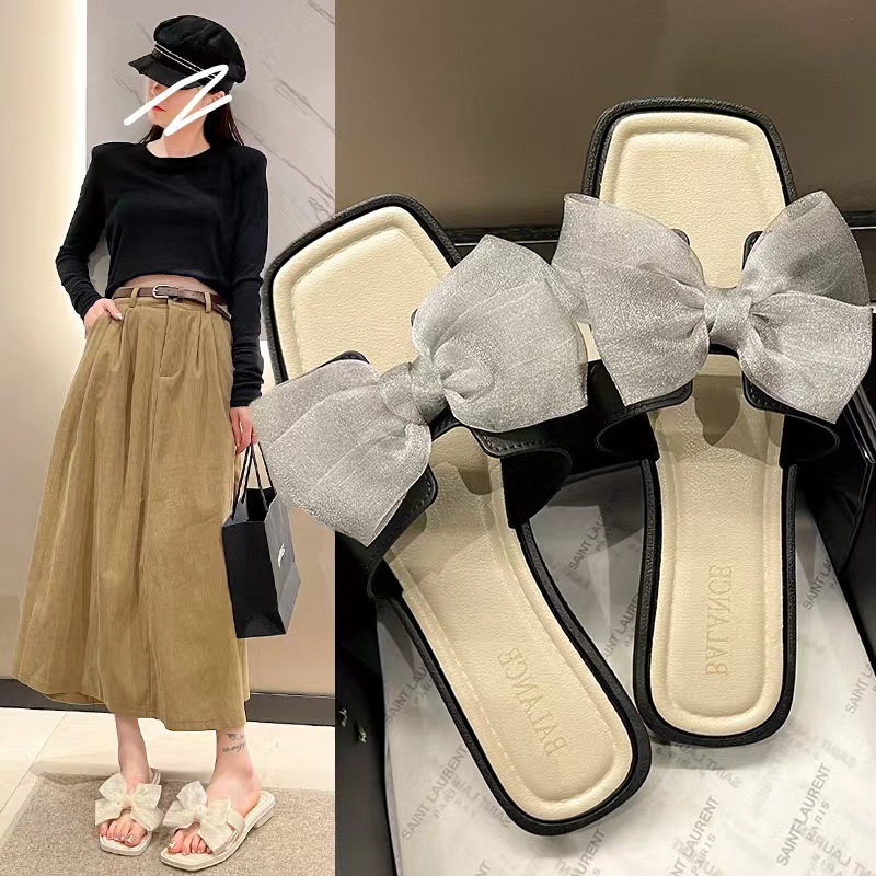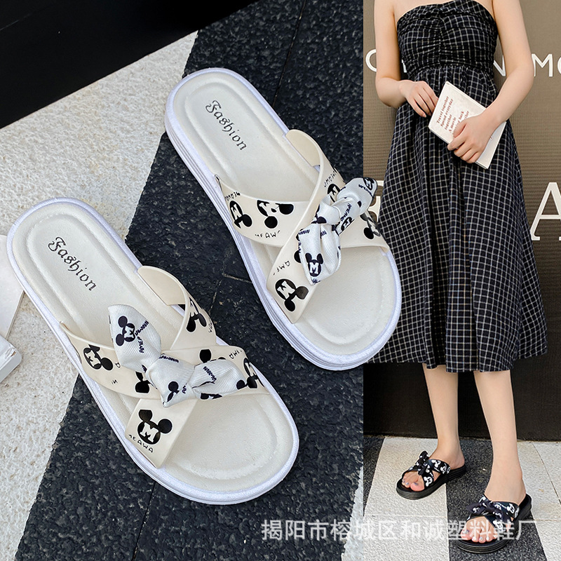 蝶結びのスリッパの女性の新型の夏の百合の女性の平底の滑り止めの漫画の外で女子学生のファッションのサンダルを着ます。