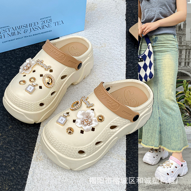 穴の靴の女性のタイプの夏の外はEVAを着て糞感を踏んで滑り止めの防臭の厚い底が高くなります。