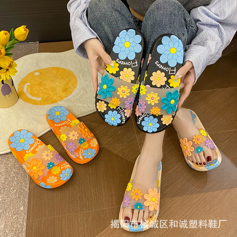 スリッパの女性靴の夏の外は2024年の新型の厚い底の坂とファッションの百合のアンドロメダビーチサンダルの女性のサンダルを着ます。