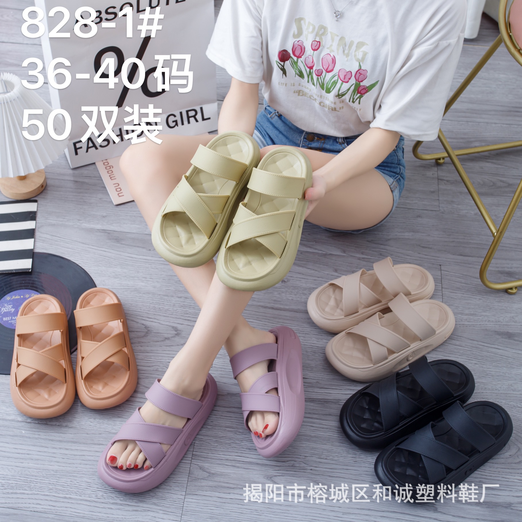 クロスボーダーの女性の現物EVAの厚い底のスリッパは高くなります。