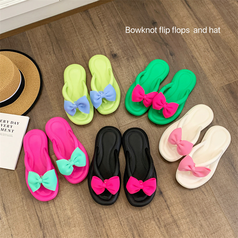 蝶結びのスリッパの女性の夏の外は2023の新型のファッションの家の平底の滑り止めのアンドロメダの風の1字の涼しさを着て柔らかい底を引き延ばします。