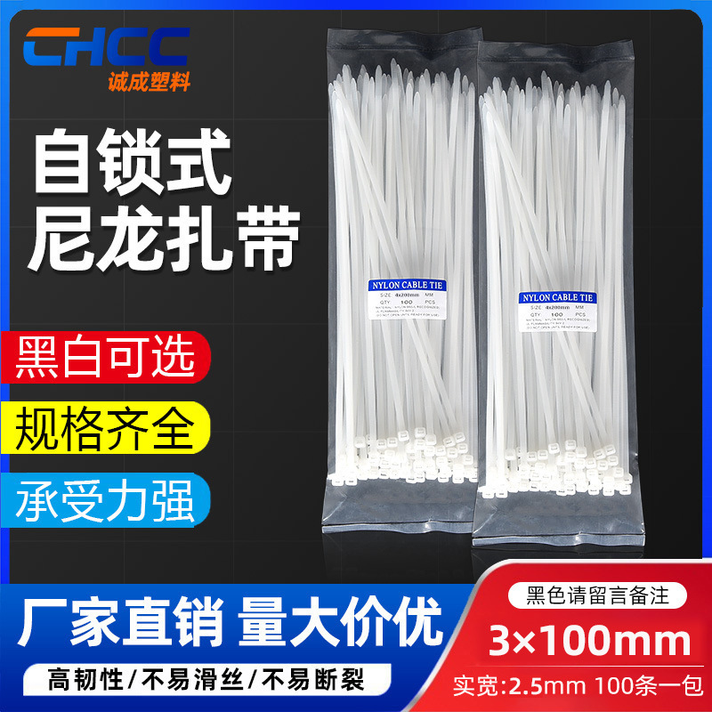 3*100 セルフロック工業用ナイロンケーブルタイ固定梱包バンドプラスチックストラップ卸売黒と白のケーブルタイ