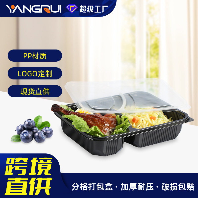 洋瑞使い捨て弁当箱食品級pp出前梱包箱二格蓋付き弁当箱漏れ防止四角い箱卸売り