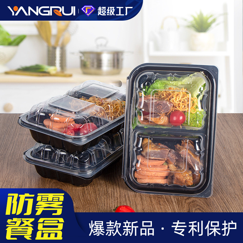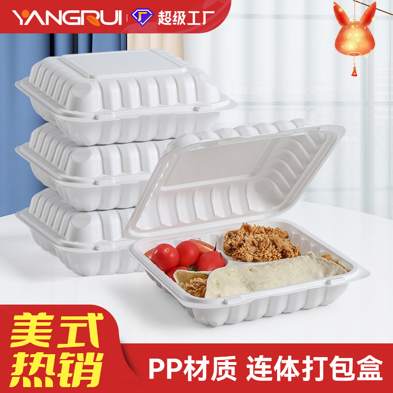 洋瑞使い捨て弁当箱防霧分格連体包装箱2色ppファストフード箱ハンバーガー箱卸売り