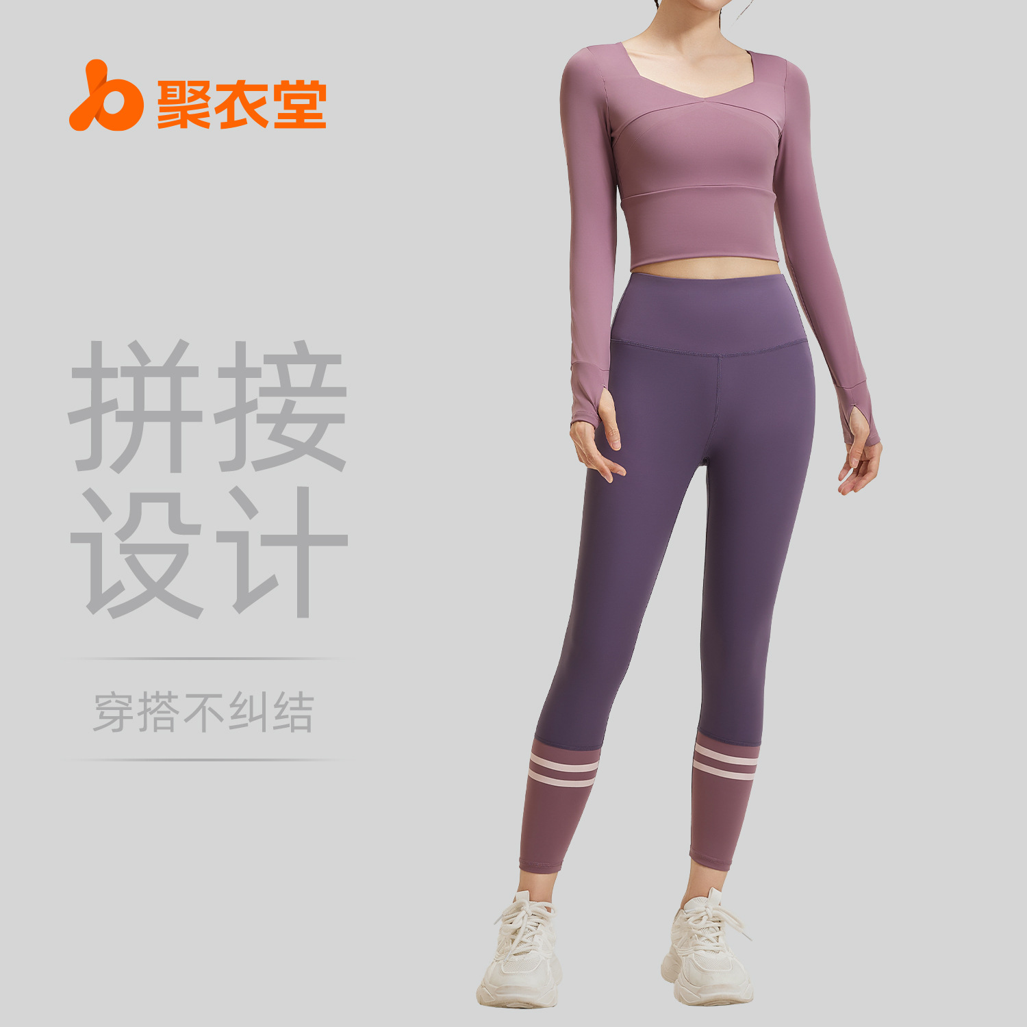 聚衣堂は腰のヨガ服をつなぎ合わせてフィットネススーツのプラティを着て運動スーツの女性を修理します。