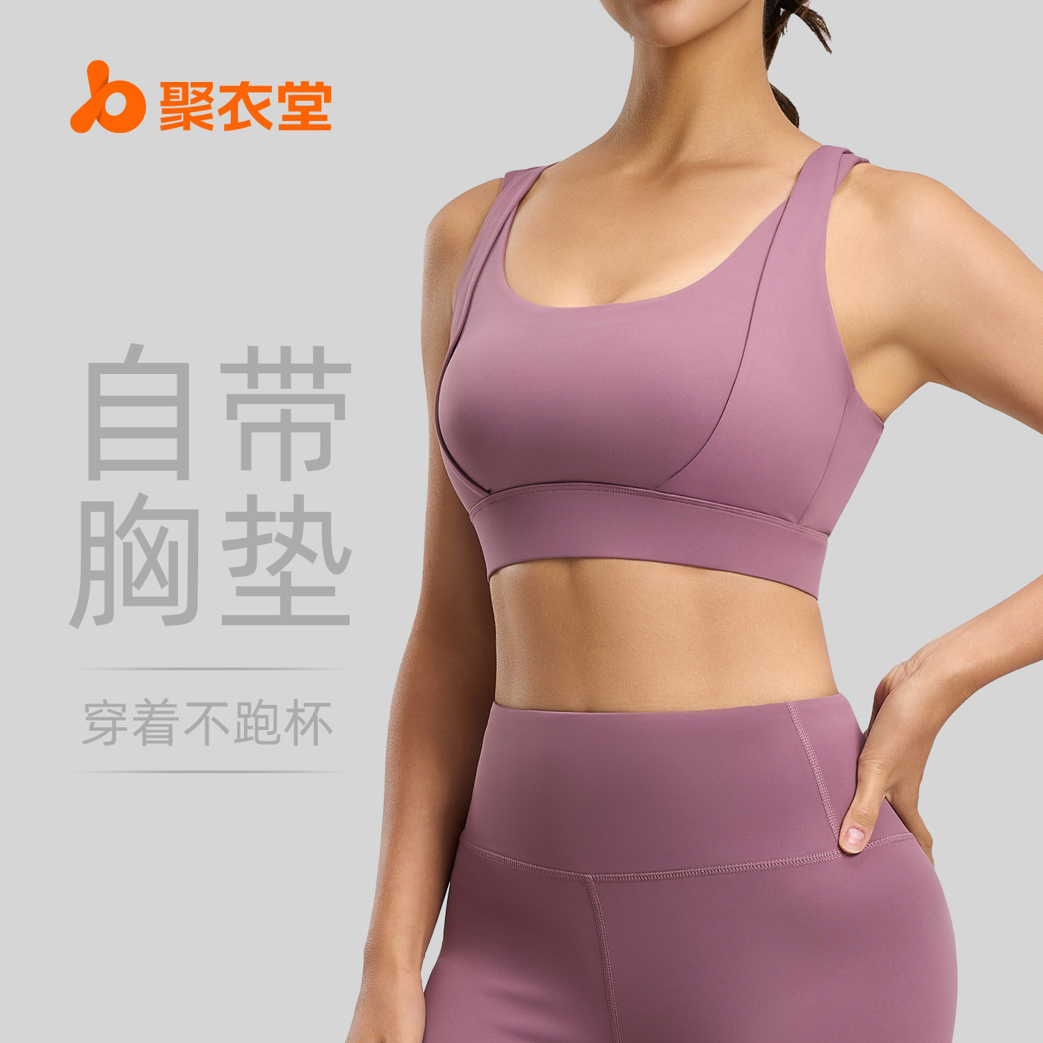 聚衣堂桃色ヨガベスト一体型固定ラウンドネックタイトフィット露出防止スポーツベスト