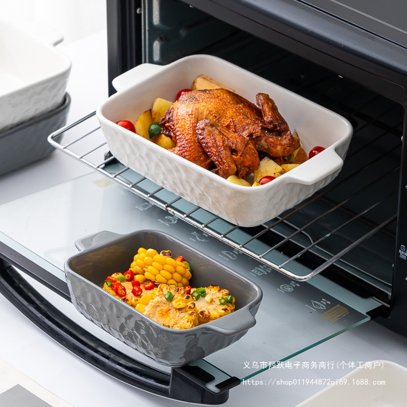 両耳陶磁器焼き皿チーズ焼き皿長方形大型家庭用電子レンジオーブン焼きボウル
