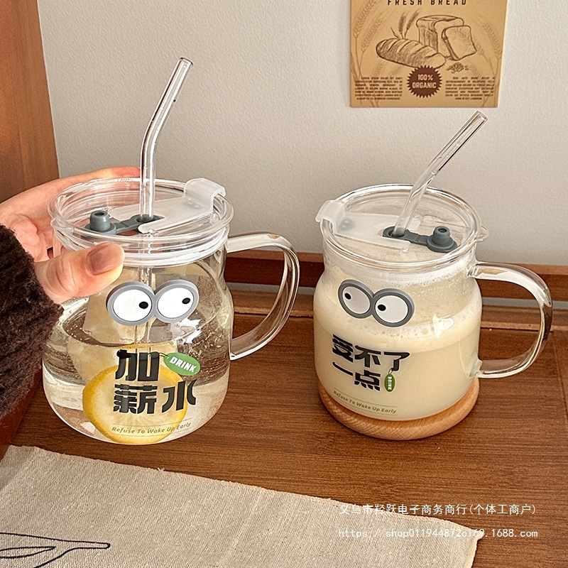 大容量オフィスガラスストローカップ高颜値サラリーマンカバー付き携帯コーヒーカップ男女コップ