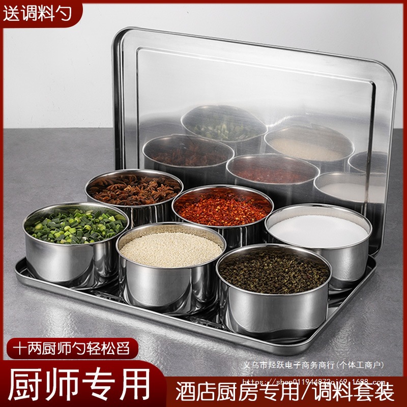 商用調味料箱セットステンレス調味料缶大容量キッチンレストランホテル食堂蓋付き調味料缶