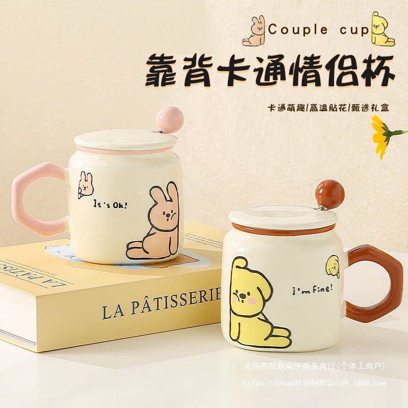 カップルのマグカップのペアカップ陶磁器蓋付きスプーンオフィスカップ家庭用クリエイティブ男女コーヒーカップ
