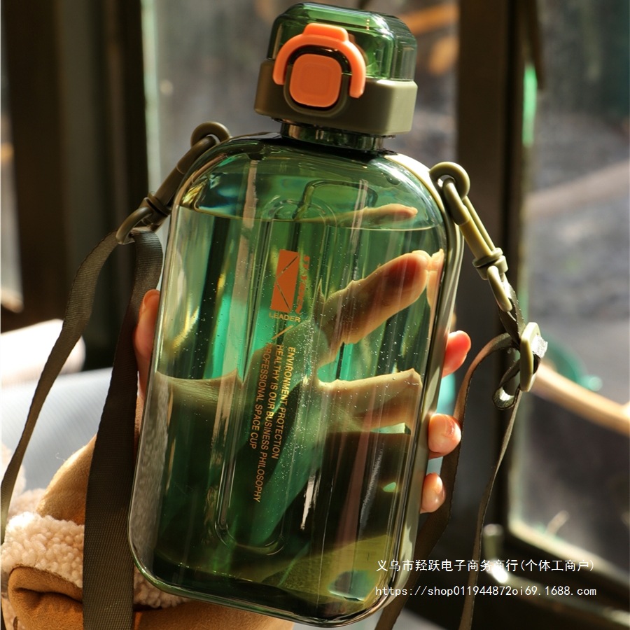 フラットカップ耐高温プラスチックネット赤学生夏男性新型2023転倒防止屋外水筒斜め掛けコップ