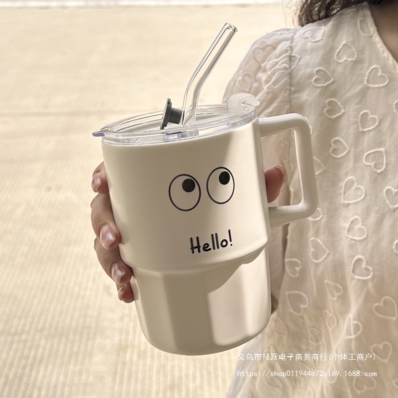 しんちゃんパカ通高颜値カップストロー家庭用カップルハンドルカップはかわいい朝食ミルクカップを持っていません