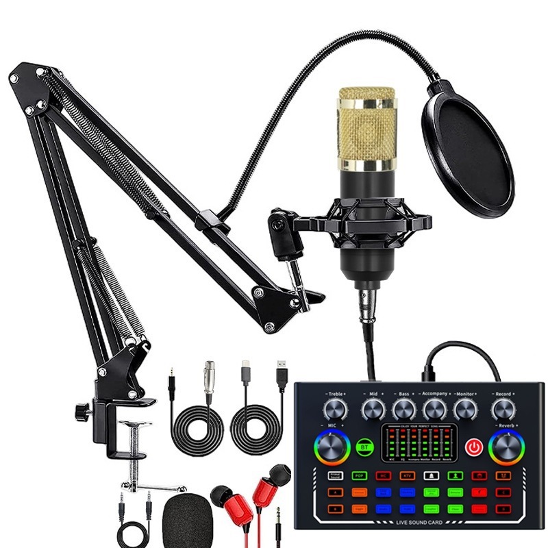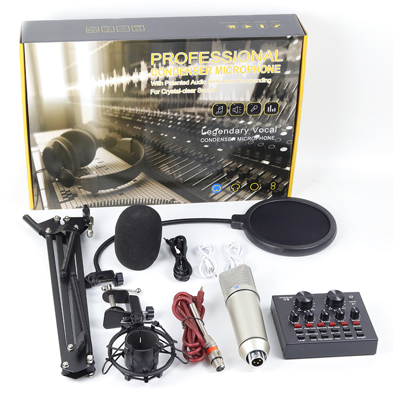 48v大振動膜マイク携帯電話中継サウンドカードセット録音k歌コンデンサマイク外付け設備セット