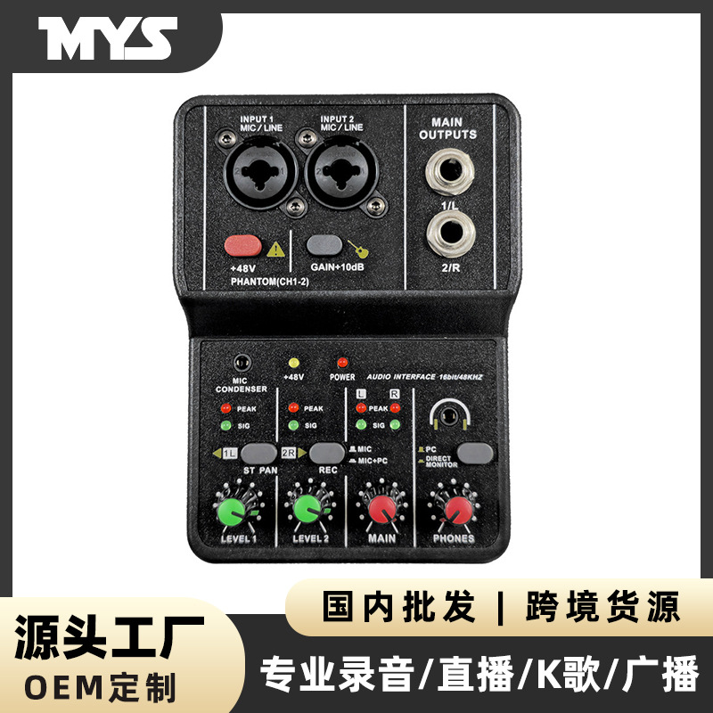 小型2路調律台48V給電公演生放送歌ギター録音パソコン携帯電話モニターUSBサウンドカード