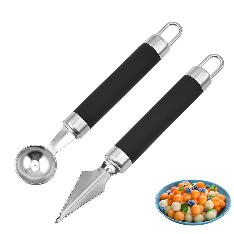 新商品の丸い柄の果物のボールを掘る器の果物の皿の彫刻器の刀のスイカのボールを掘るスプーンの家庭用の果物の彫刻の道具