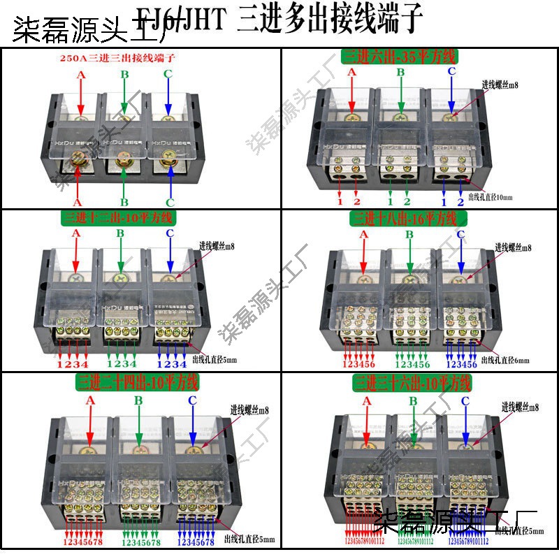 三相三線接続箱3進12/18/24/36出分線端子配電箱大電力接続器
