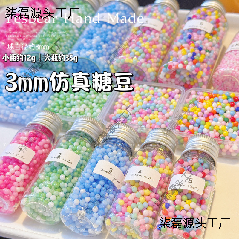 卸売りシミュレーション砂糖豆3mmカラー無孔プラスチックボールDIY滴糊流麻つまみ装飾