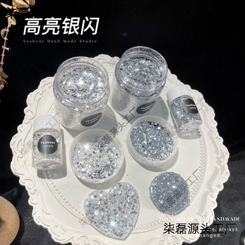 卸売り輸入ハイライト銀フラッシュドリル銀フラッシュピンク混合フラッシュネイルアート流麻滴糊