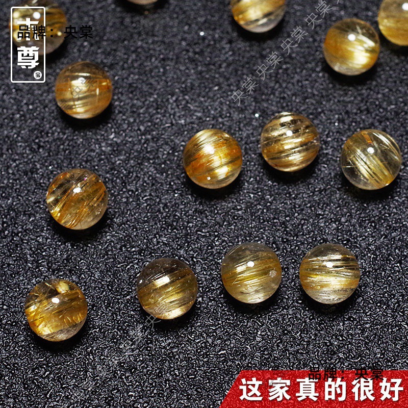 天然ブラジル7a黄金発晶散珠diy手作りブレスレット順髪チタン結晶単珠多宝半製品部品