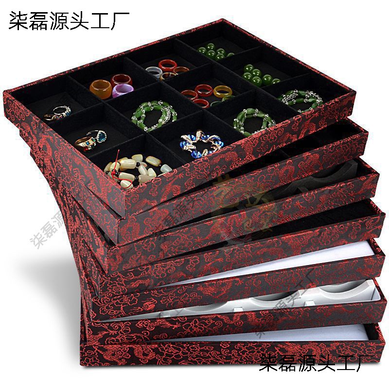 レトロな竜紋の鍛布の宝石の首飾りは格子盤のブレスレットのペンダントの指輪の手の展示盤の展示箱を見ます。