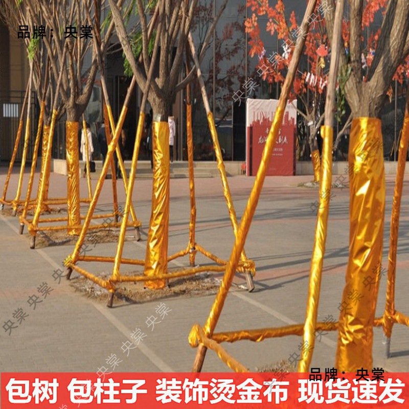 木の装飾の金布の包みの木は木の金紙の舞台のしわの金箔の紙を巻いて金の布のデパートにアイロンをかけて開業して柱の厚いことを包みます。
